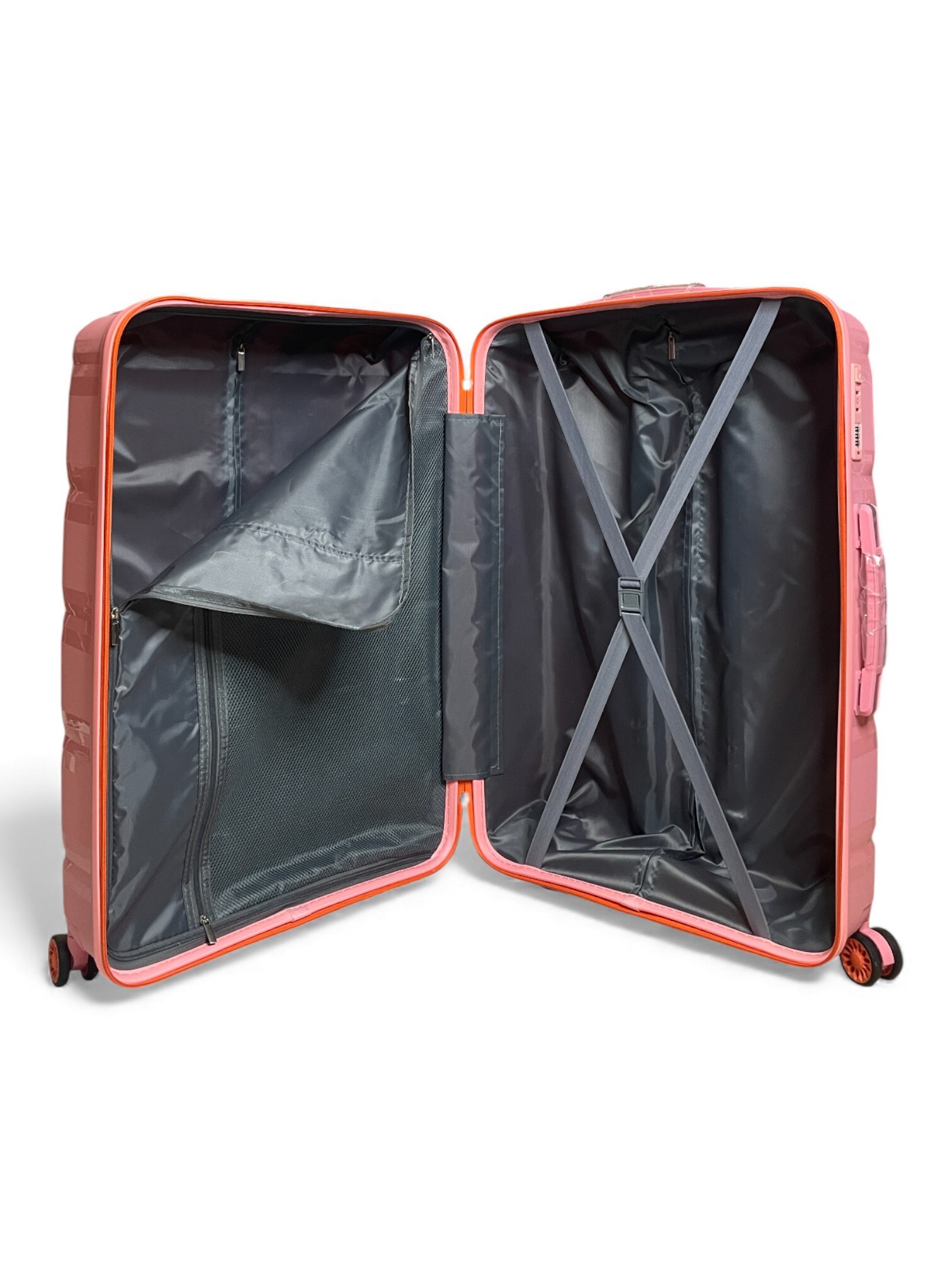 Лёгкий, но невероятно прочный чемодан из ударопрочного пропилена выдержит любые нагрузки в дороге и защитит ваши вещи. Благодаря особой структуре материала "Skycase" устойчив к царапинам, вмятинам и даже дождю, оставаясь стильным и презентабельным. Его вес делает переноску и подъём в багажное отделение максимально удобными, а продуманное внутреннее пространство с эластичными креплениями и разделителями позволит компактно разместить всё необходимое. Современный лаконичный дизайн подойдёт как для деловых поездок, так и для отпуска. Объём и вес делают "Skycase" удобным вариантом для авиаперелётов. Доступен в нескольких стильных расцветках – выберите свою! Путешествуйте с комфортом и без забот вместе с "Skycase"!