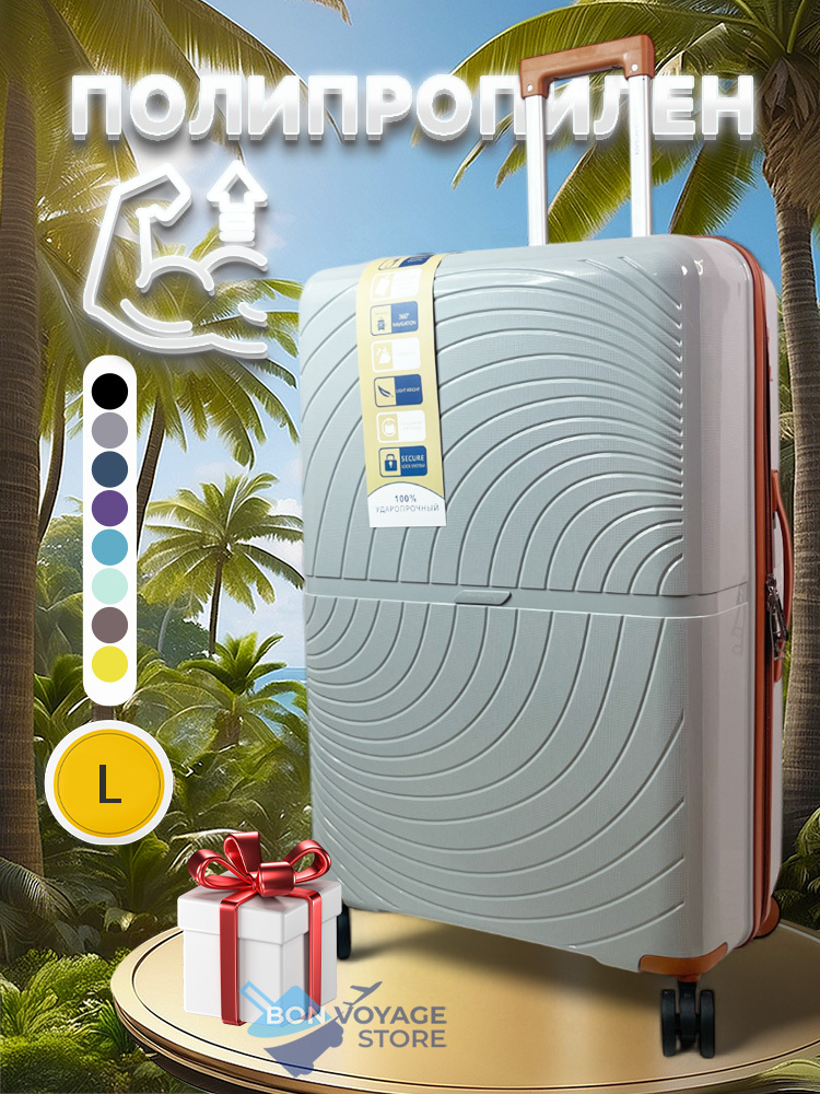 Большой чемодан Bon-Voyage PP Wave, Светло-серый, L