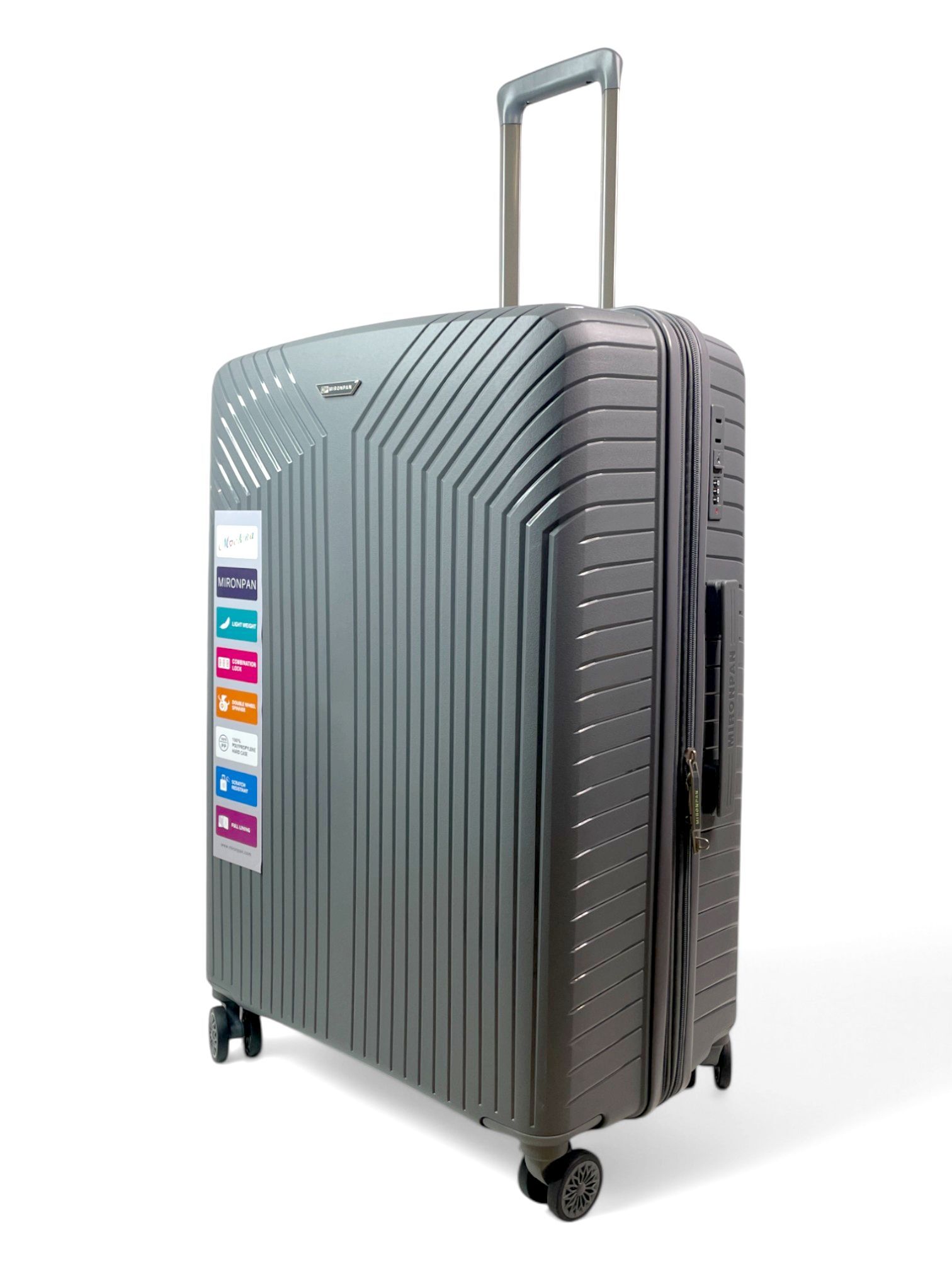Этот стильный и практичный чемодан от Mironpan станет незаменимым помощником в ваших путешествиях! Изготовленный из высококачественного полипропилена, он отличается особой прочностью и долговечностью. Благодаря четырем надежным двойным колесам и выдвижной телескопической ручке, его использование становится максимально комфортным и удобным. Чемодан оснащен расширителем, что позволяет взять с собой все необходимые вещи.
