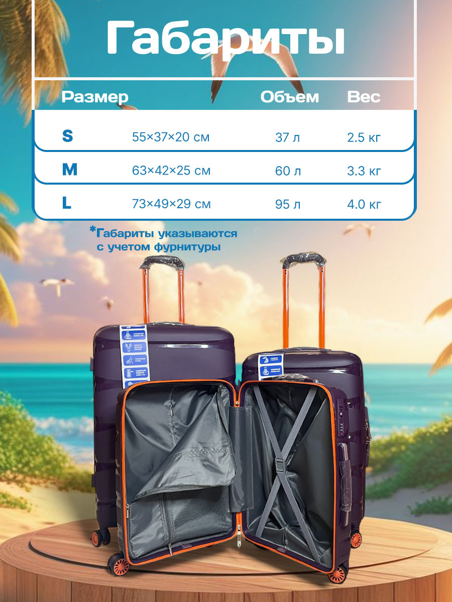Лёгкий, но невероятно прочный чемодан из ударопрочного пропилена выдержит любые нагрузки в дороге и защитит ваши вещи. Благодаря особой структуре материала "Skycase" устойчив к царапинам, вмятинам и даже дождю, оставаясь стильным и презентабельным. Его вес делает переноску и подъём в багажное отделение максимально удобными, а продуманное внутреннее пространство с эластичными креплениями и разделителями позволит компактно разместить всё необходимое. Современный лаконичный дизайн подойдёт как для деловых поездок, так и для отпуска. Объём и вес делают "Skycase" удобным вариантом для авиаперелётов. Доступен в нескольких стильных расцветках – выберите свою! Путешествуйте с комфортом и без забот вместе с "Skycase"!