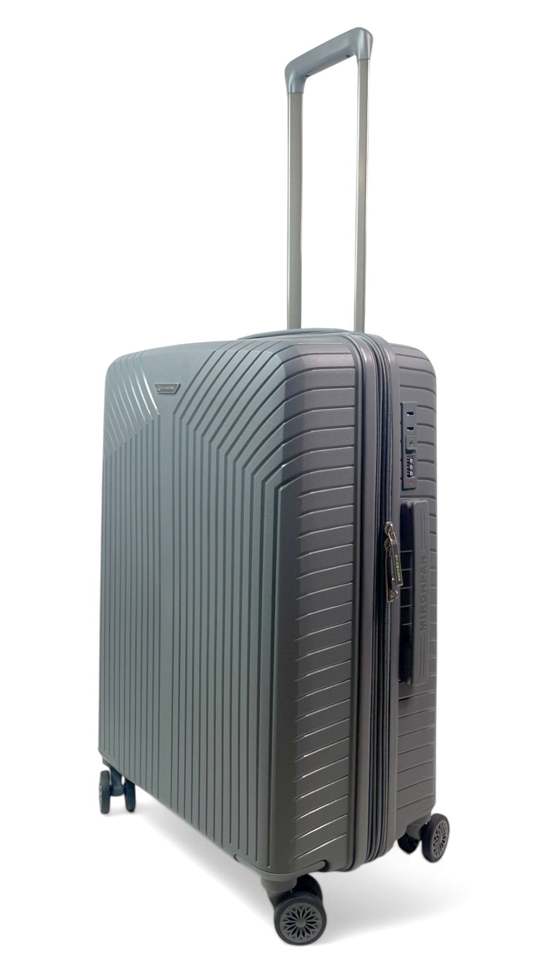 Этот стильный и практичный чемодан от Mironpan станет незаменимым помощником в ваших путешествиях! Изготовленный из высококачественного полипропилена, он отличается особой прочностью и долговечностью. Благодаря четырем надежным двойным колесам и выдвижной телескопической ручке, его использование становится максимально комфортным и удобным. Чемодан оснащен расширителем, что позволяет взять с собой все необходимые вещи.